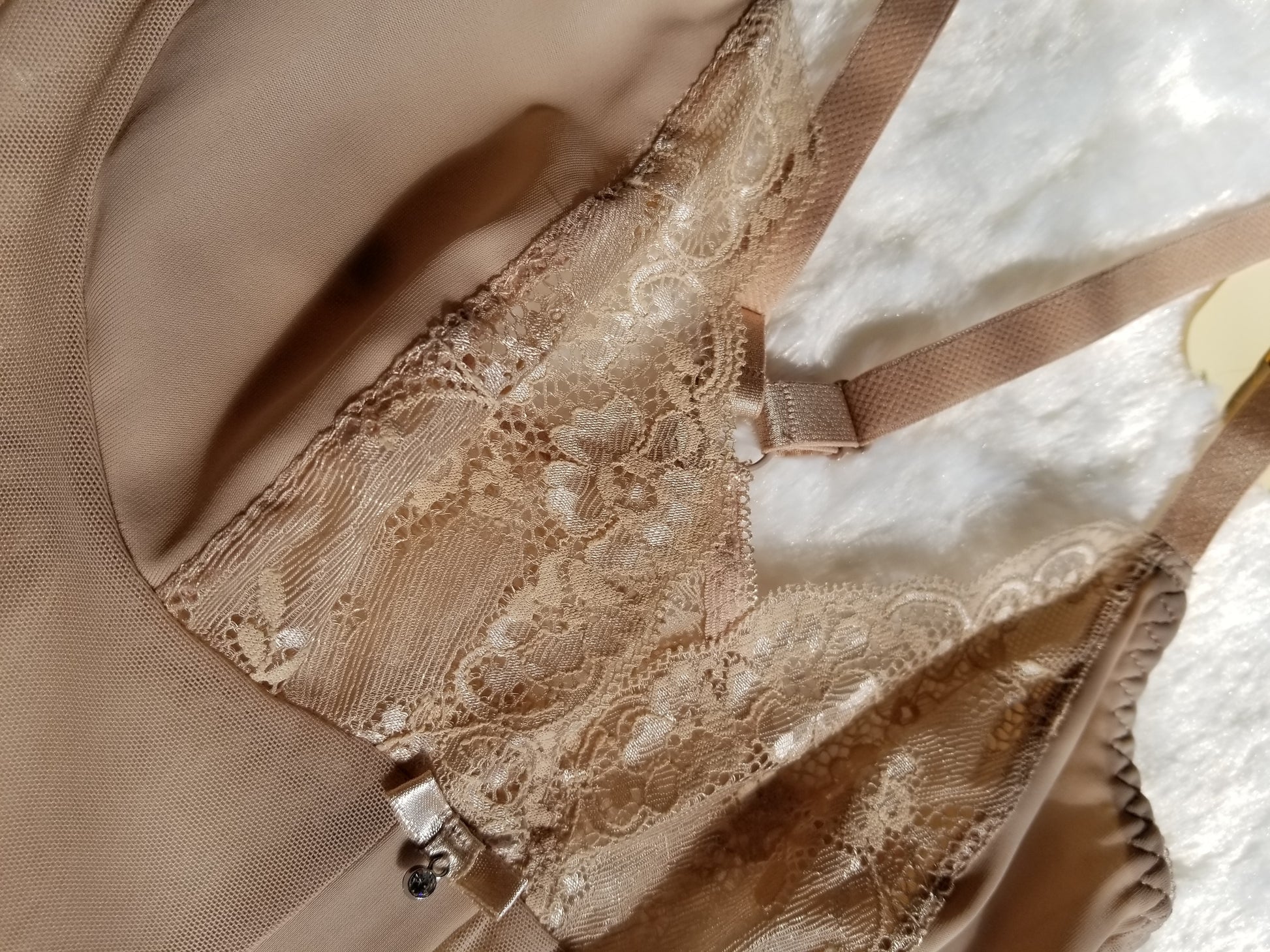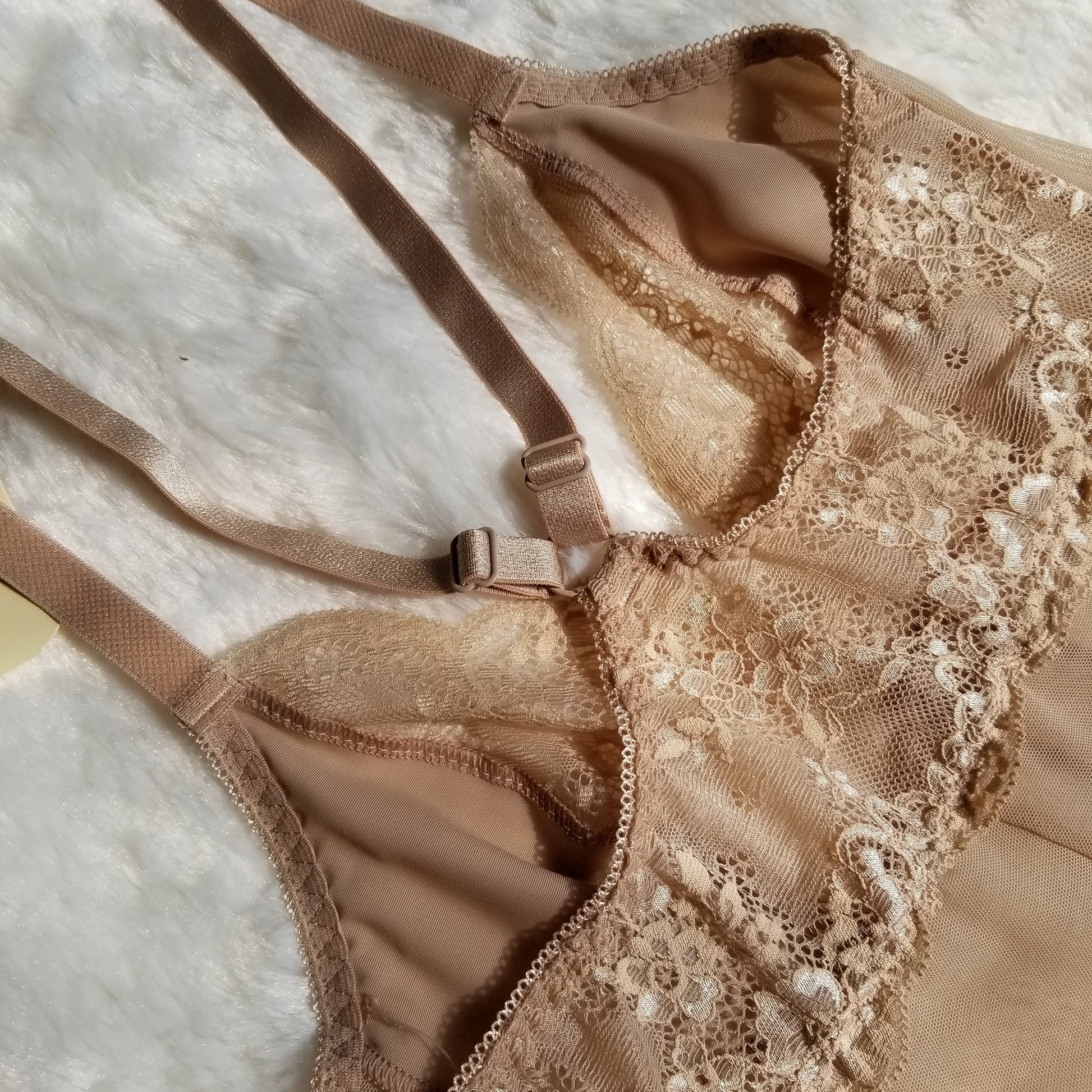 Coquettish lace chemise in beige.
