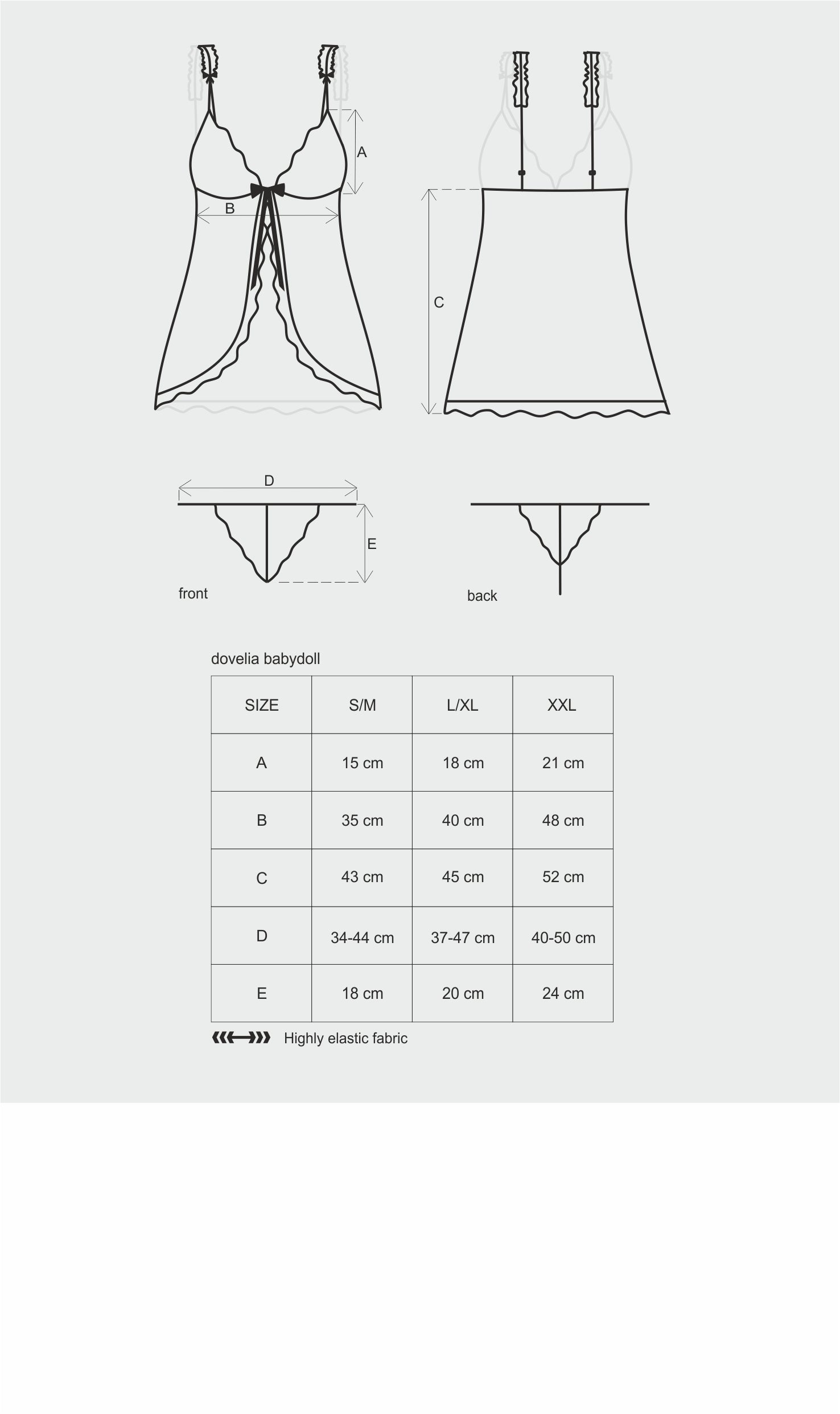 - grey, elastic trimming at the top connected with cups