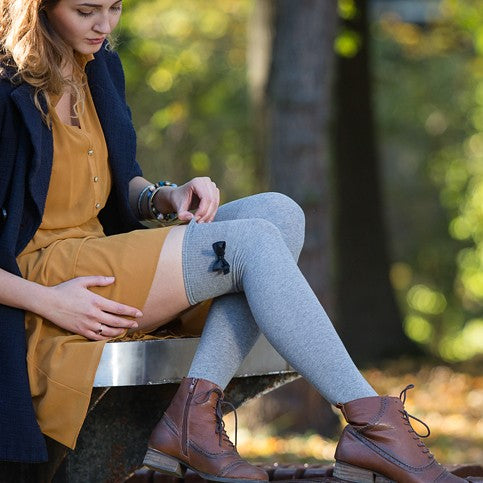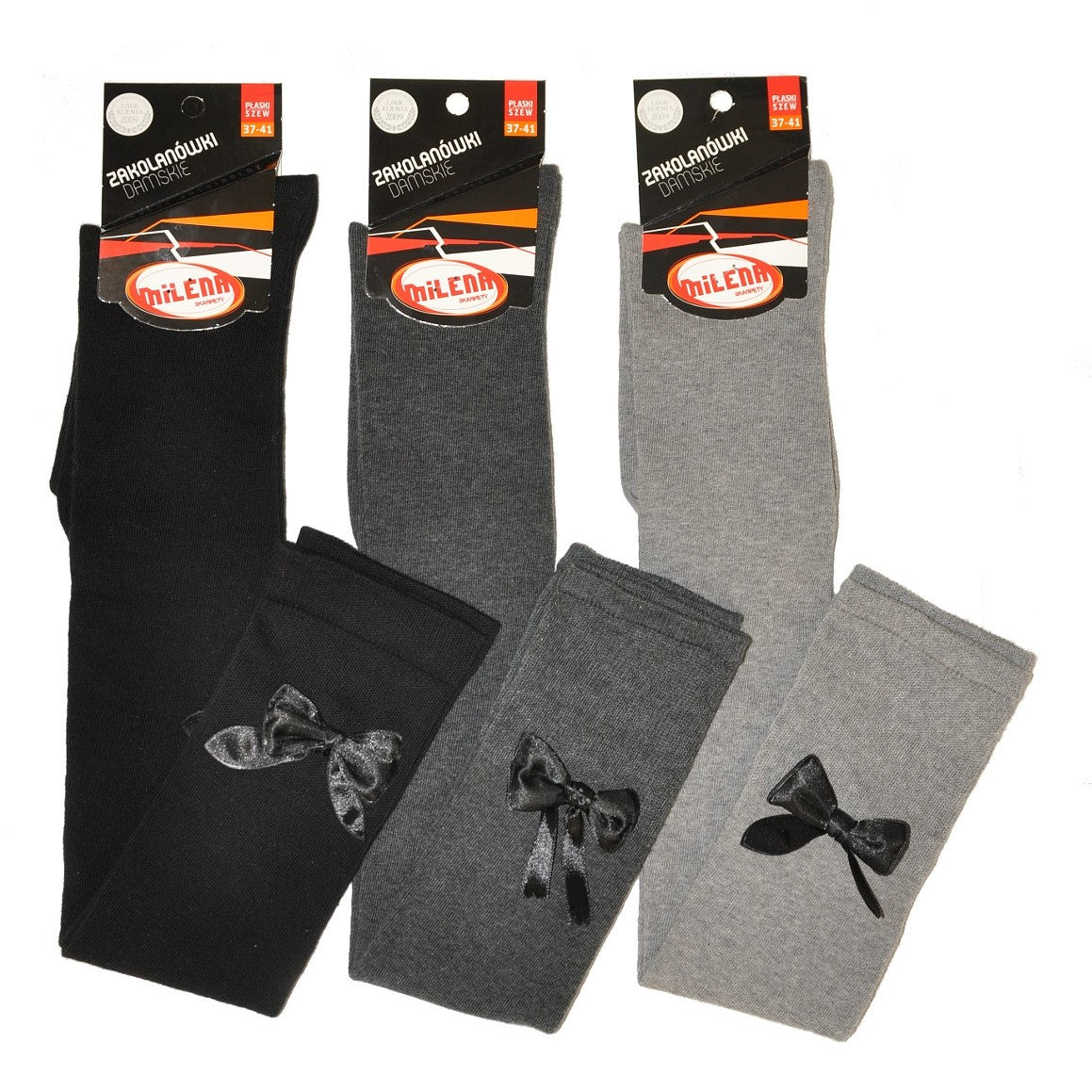 Over the knee socks, made of 75% cotton with an addition of elastic fibers, decorated with a satin bow. Flat seams, non-compressive ribbing ensure comfort of wearing.