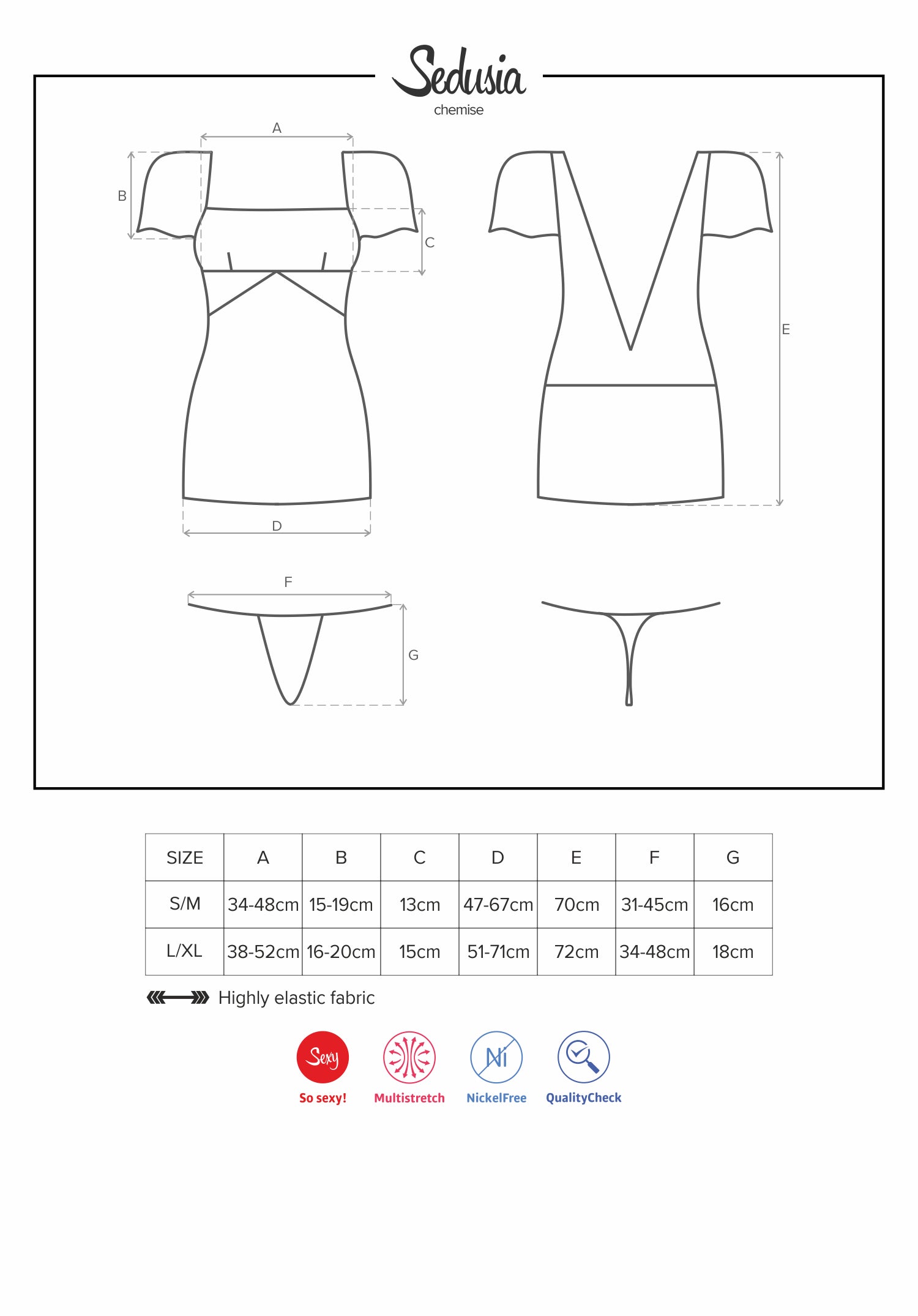 Elegant front and… incredibly stunning back! This chemise is more than sexy lingerie. It’s an explosion of your sex appeal! Get ready to make a naughty use of it together with your lover. Put on Sedusia and seduce him tonight!
